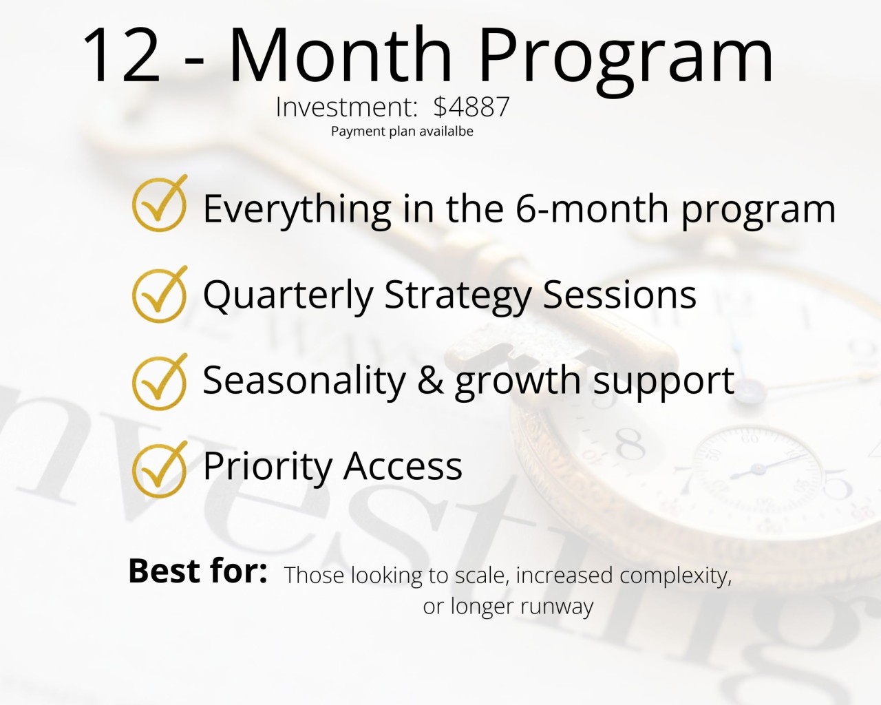 This coaching is for owners, operators, and investors who want results — not another self-paced course. If you’re here for structure, action, and personalized support; you’re in the right place.